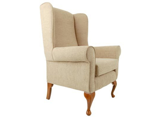 The Sherwood fire side chair is a traditional high seat chair, finished in fabric and available in 3 colours, Biscuit, Green and Red.